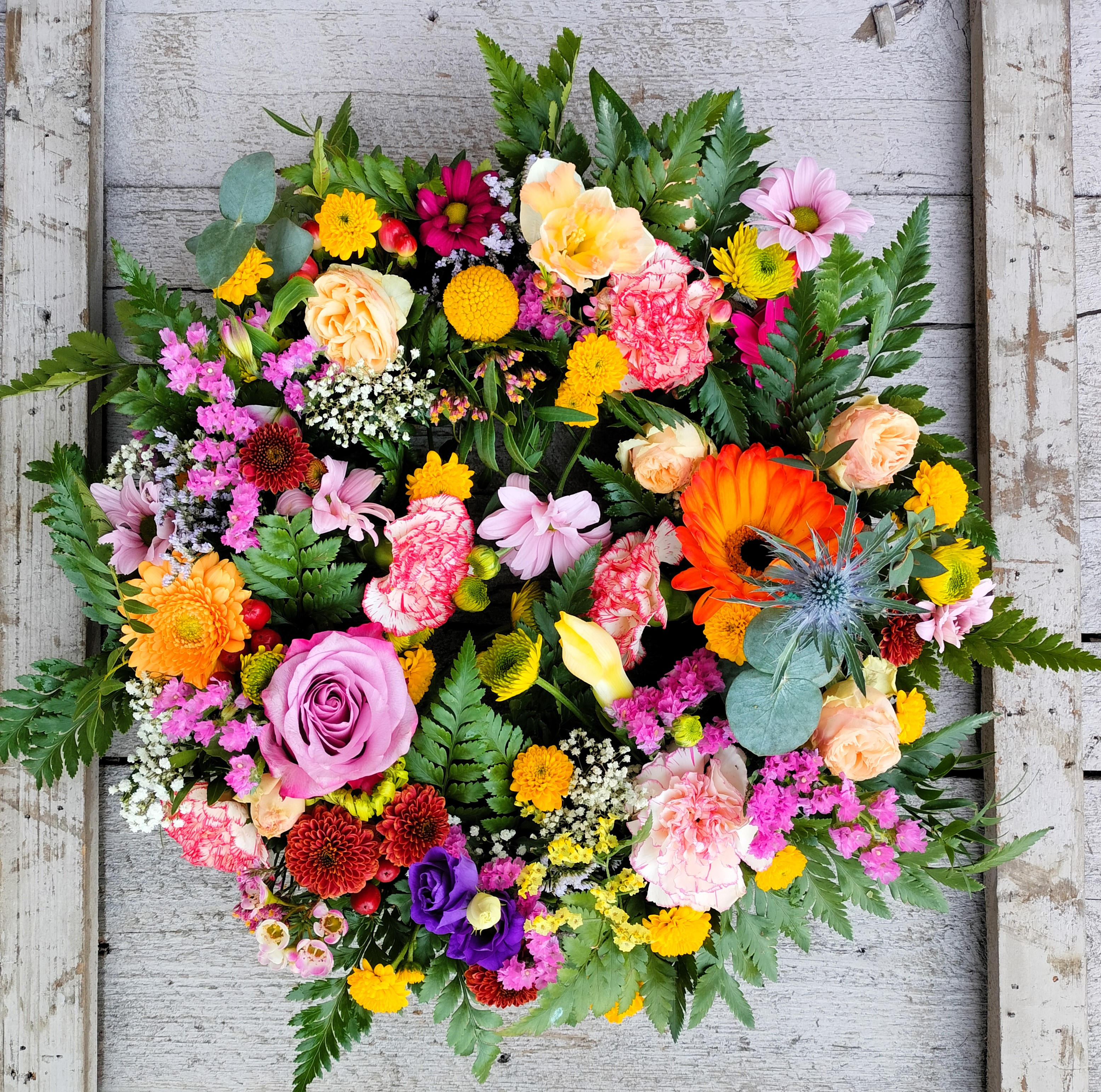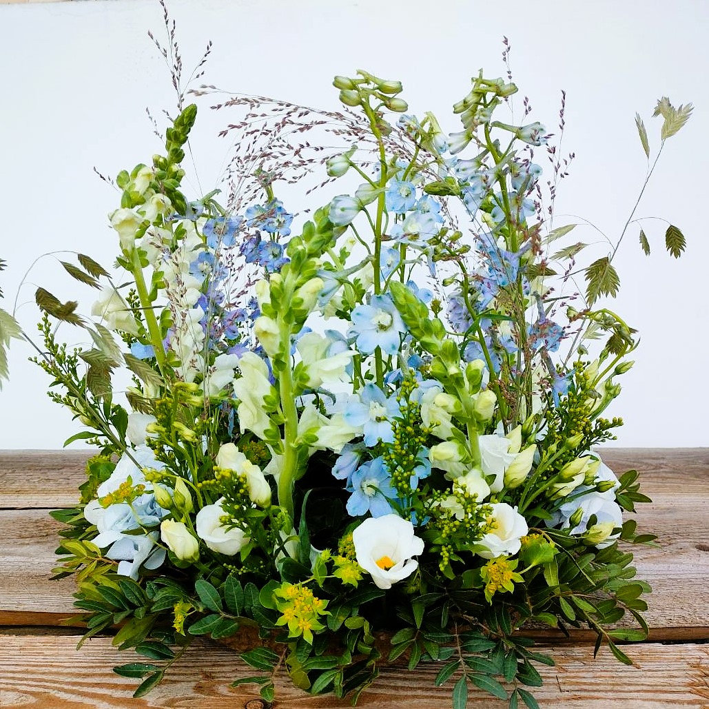 Bestil bårebuketter, kranse eller kistepynt m.m. online her.