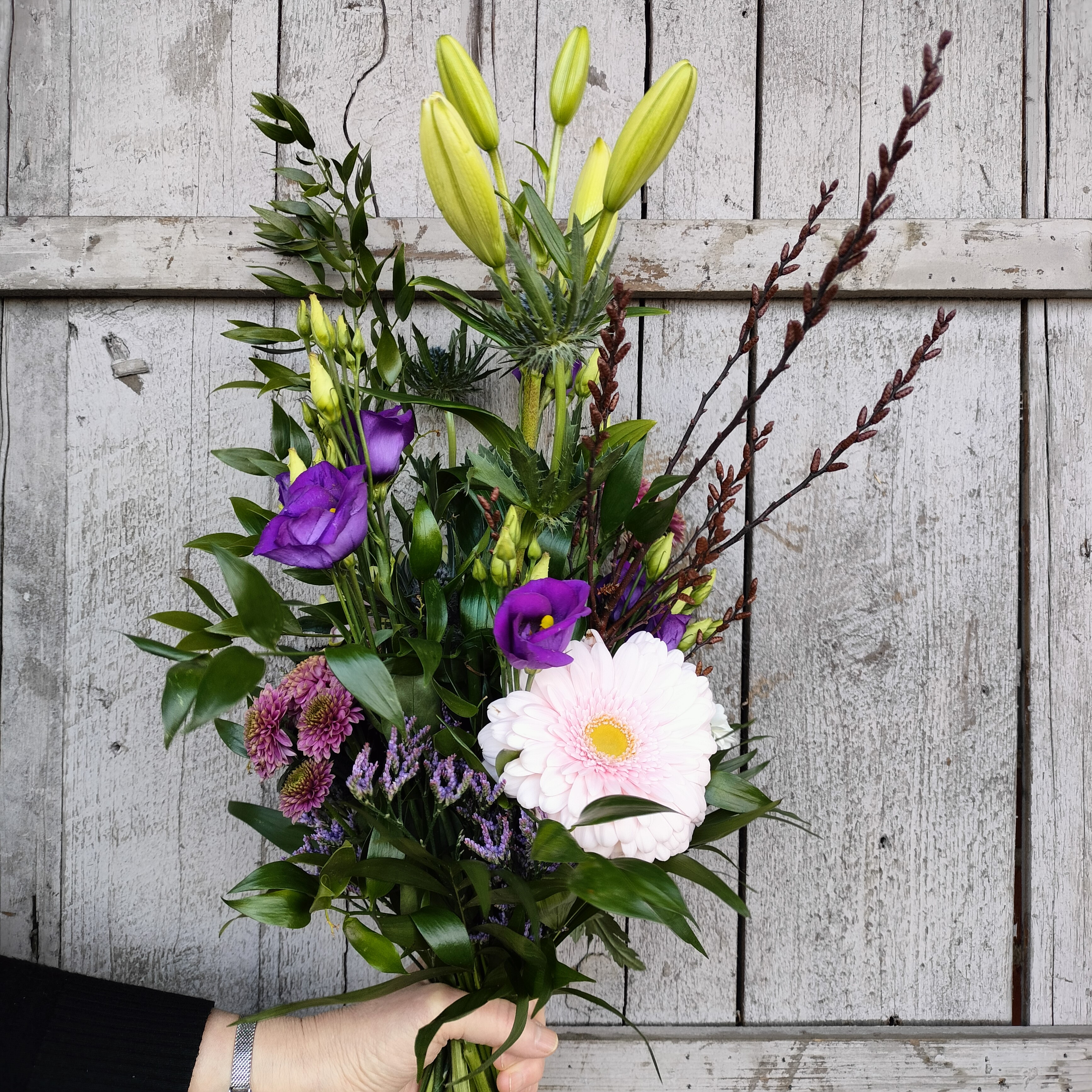 Buketten kan varierer alt efter årstidens blomster.